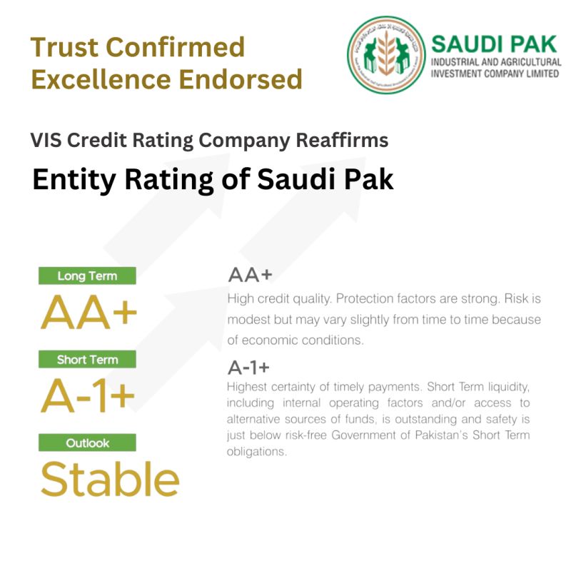 A-1+ Highest certainly of timely payments. Short Term liquidity including internal operating factors and/or access to alternative sources of funds is outstanding and safety is just below risk-free Government of Pakistan’s Short Term obligations.